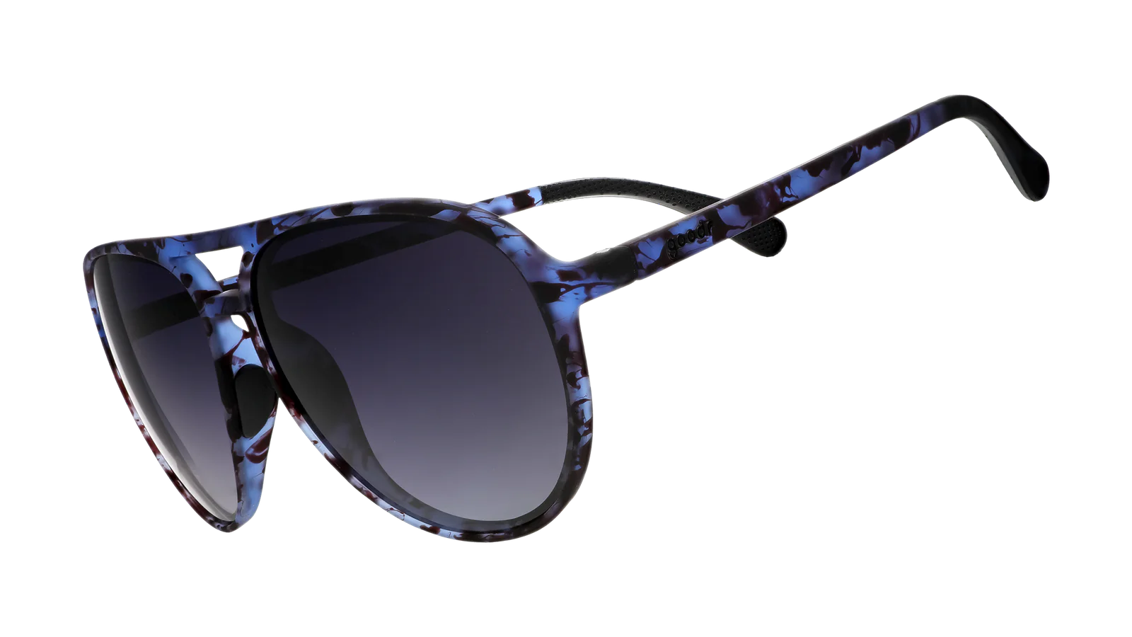 Avoid eye contact at all costs with these Mach Gs featuring translucent blue tortoiseshell frames and black gradient lenses. They're perfect for cultivating the mystery and low-key allure you naturally radiate! Plus, eye contact is way overrated.